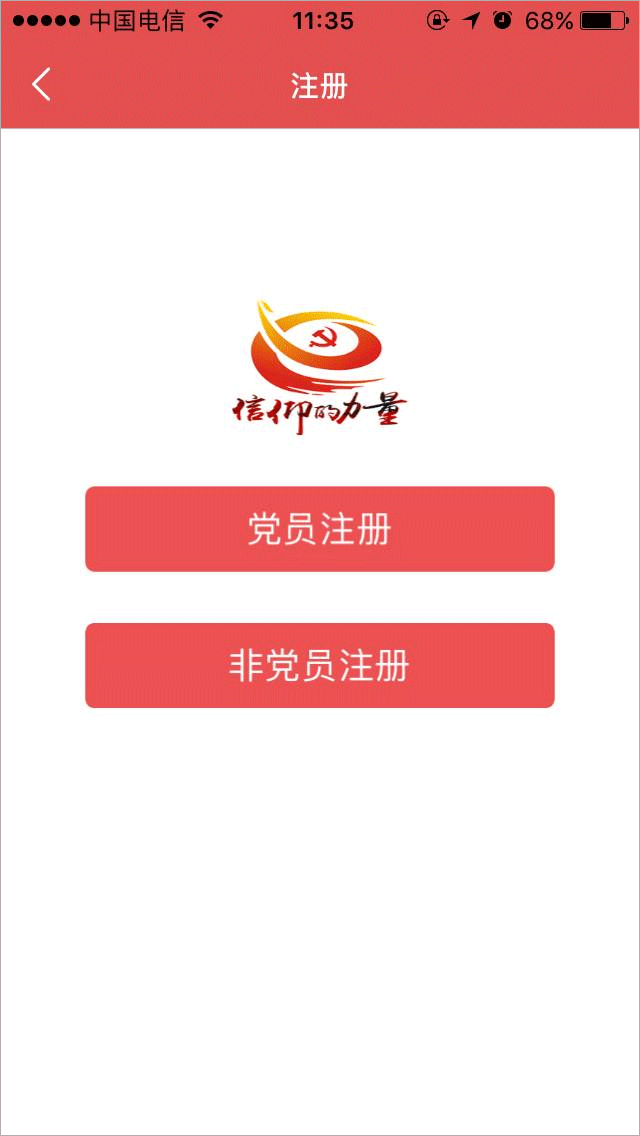 2、党员请选择“党员注册”,非党员请选择“非党员注册”