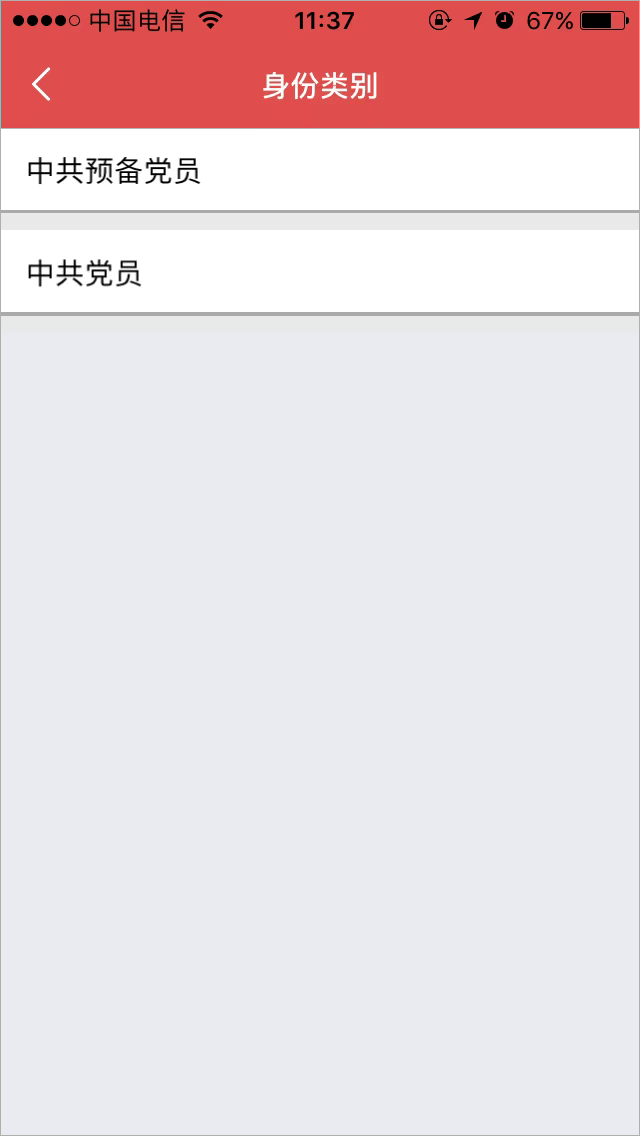 4、身份类别 :党员和非党员身份类别显示不同,请注意