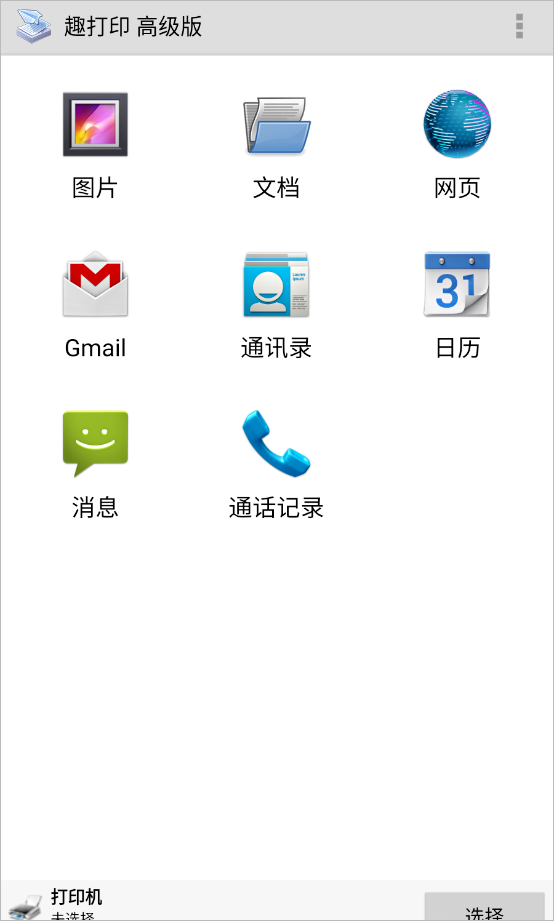 1、打开app可以打印图片、文档、网页、电子邮件等多种格式的文件
