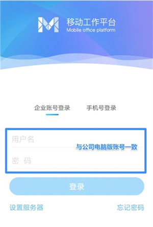 1、在进入软件后,进入登录页面,首先设置服务器,再输入账号和密码。点击“设置服务器”。