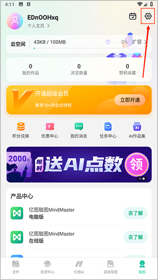 1、进入思维导图MindMaster软件后点击我的