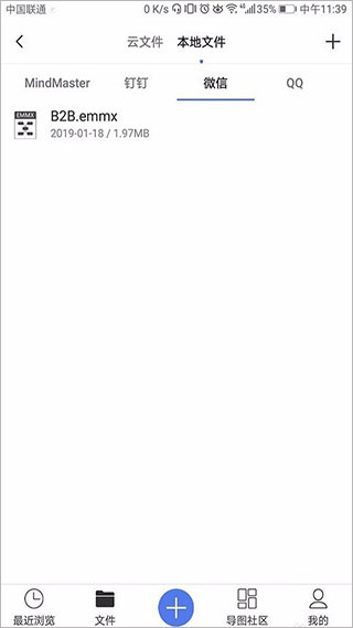 3、别人发给我的微信、QQ、钉钉接收完思维导图的源文件后,可直接打开思维导图MindMaster app,在“本地文件”里面进行查看、保存、编辑。