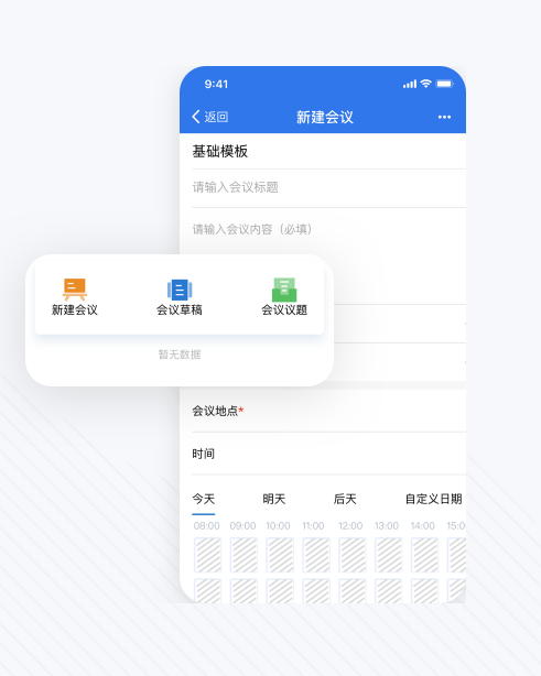 新建会议内除了可以发起基础的会议以外,还有有会议草稿,会议议题功能。方便会议的记录以及讨论。