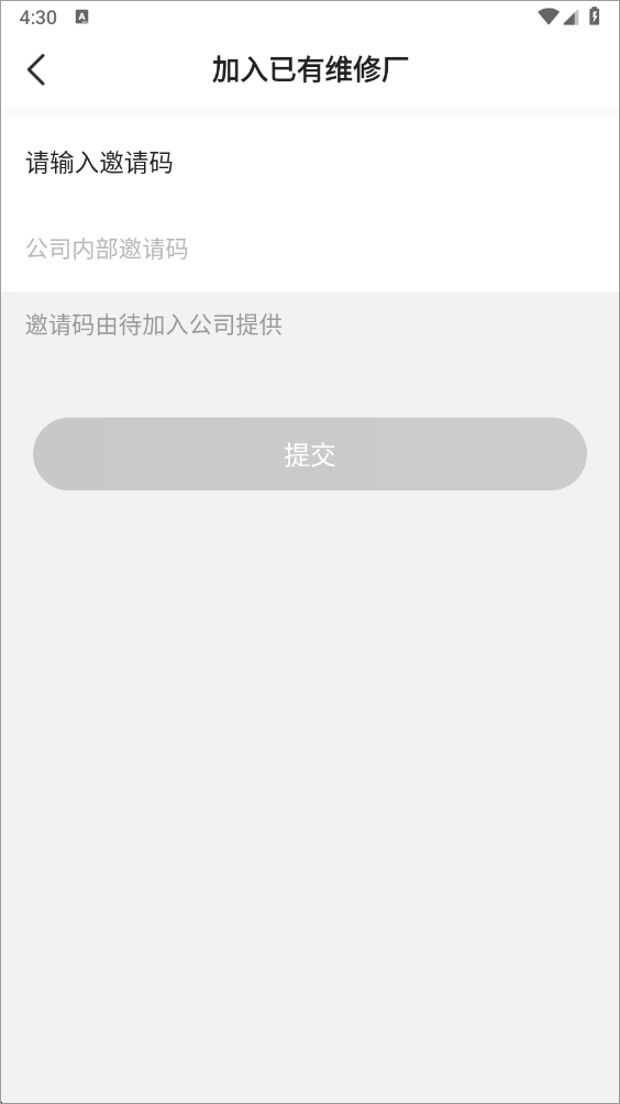 4、如是已加入的维修厂输入公司内部邀请码点击提交即可