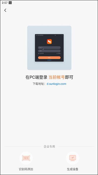 2、如果用户是控制PC,那么直接复制软件下载地址并登录手机端同一账号即可;