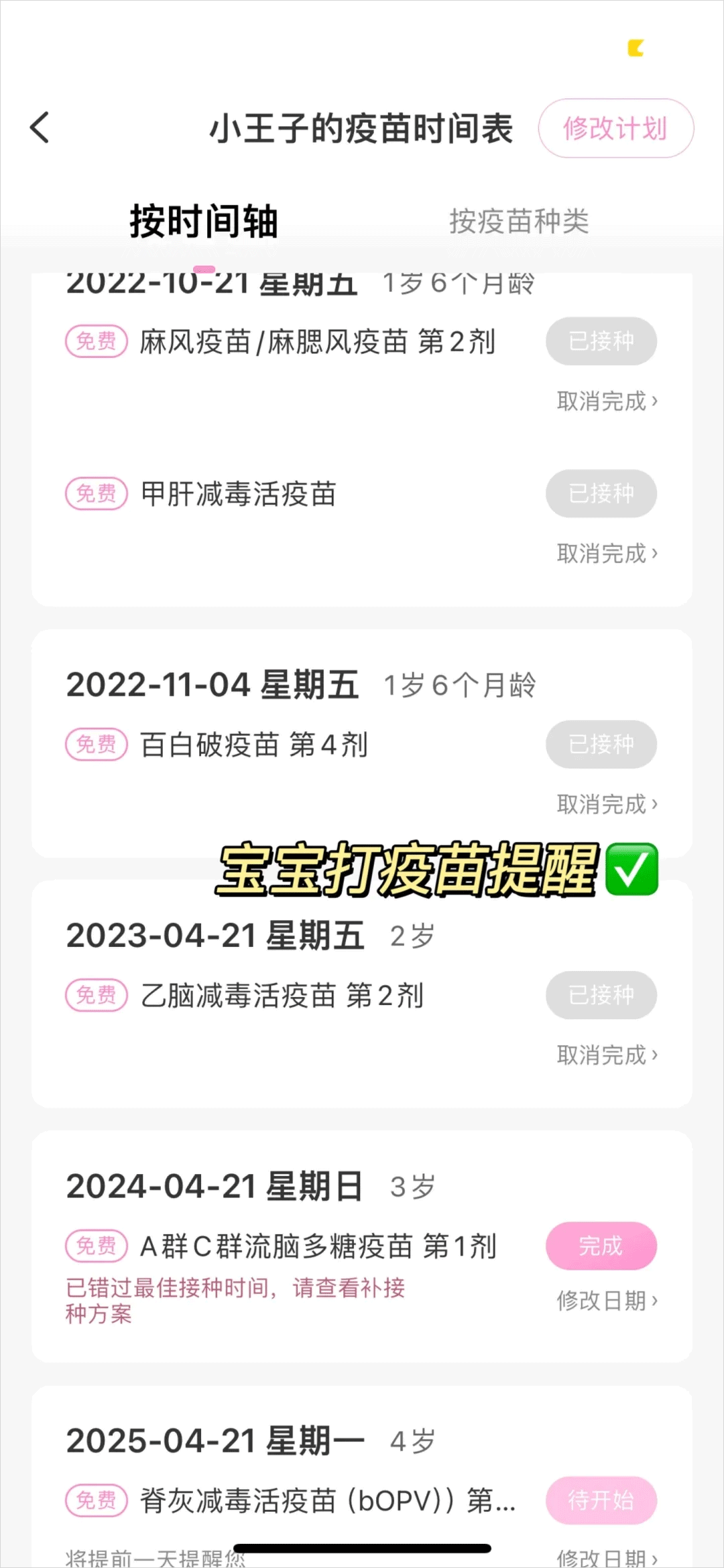 3、支持设置宝宝疫苗提醒