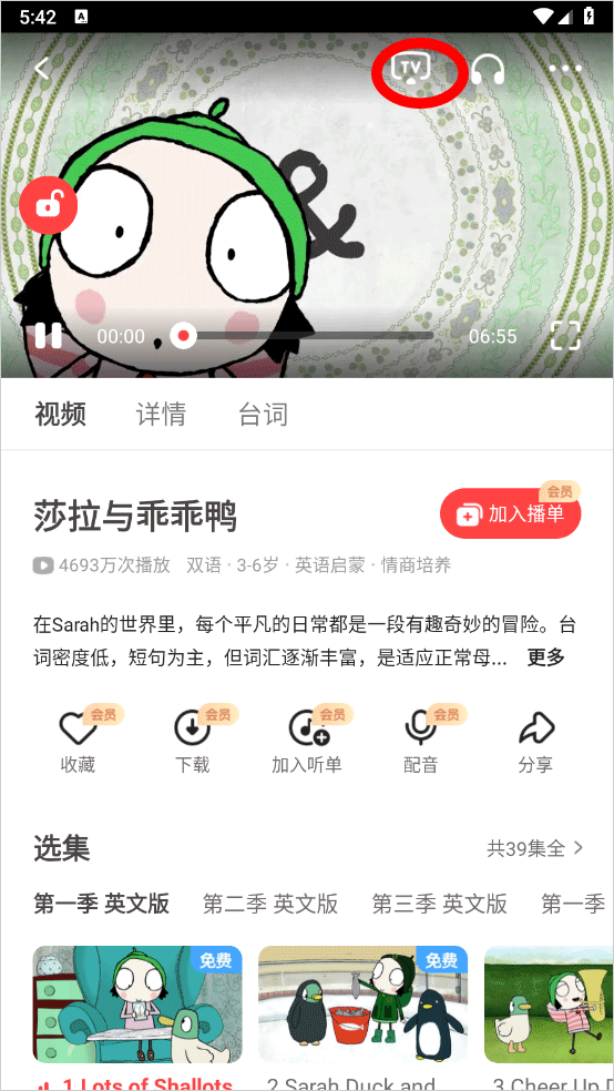 2、进入播放页面点击右上角的tv图标