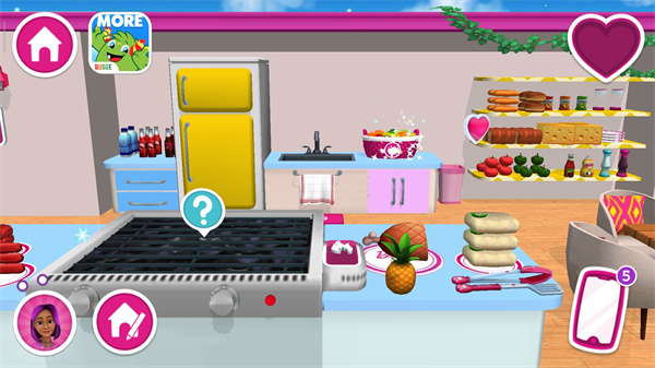 与芭比一同烹饪!庆祝节日!随心所欲!展现你的风格,装饰你的梦幻房间或者烹饪美味的食物。可能性无穷无尽!