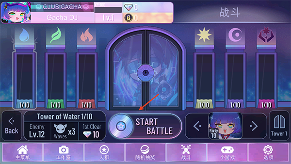 7、点击进入,然后在点击图中箭头所指向的功能开始战斗。