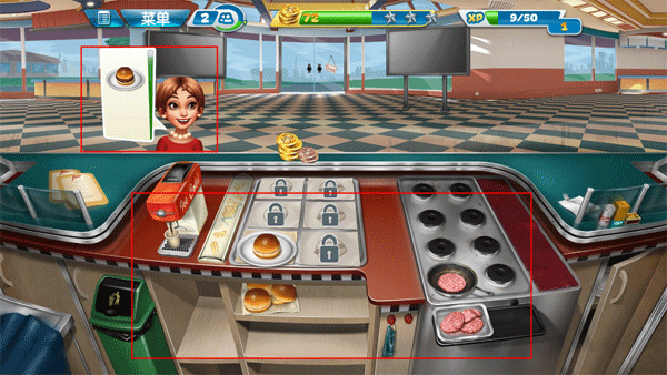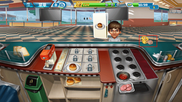 2、顾客吃到自己想要的食物,就会给与金币和小费在桌子上,你需要点击桌子上的货币来获取。