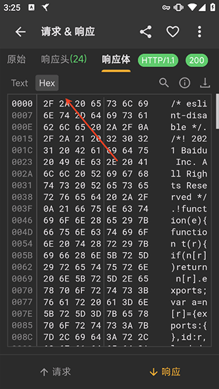 9、然后就可以点击自己的数据去拿响应体内的内容了,并且在查看数据时可以切换成文本格式或hex等视图模式下进行查看