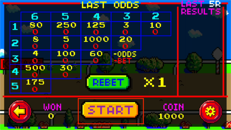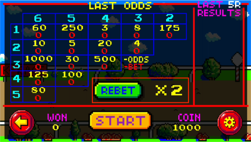 4、点击REBET能够调节每次下注的分数。