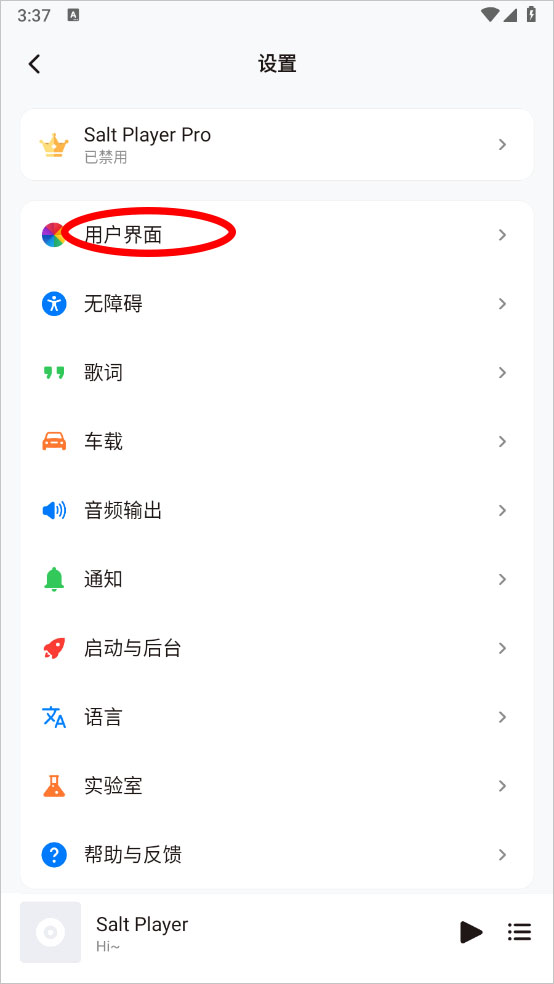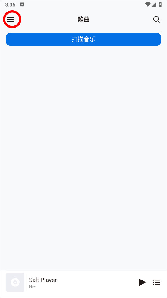 1、打开椒盐音乐(Salt Player)app后,点击左上方三条杠