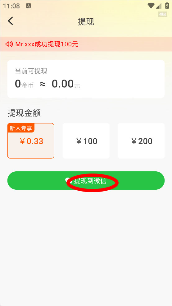 3、选择你的提现金额即可