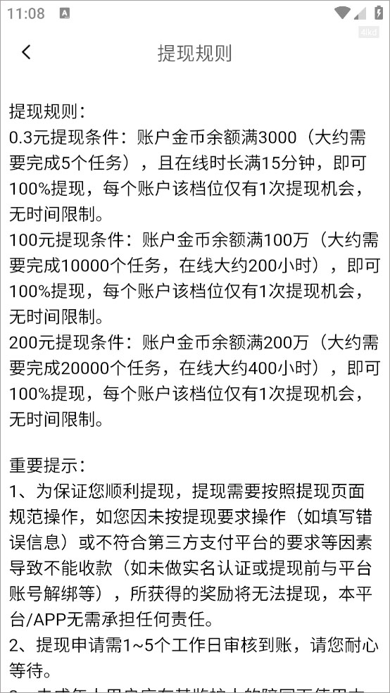 4、注意每个金额都有提现规则哦