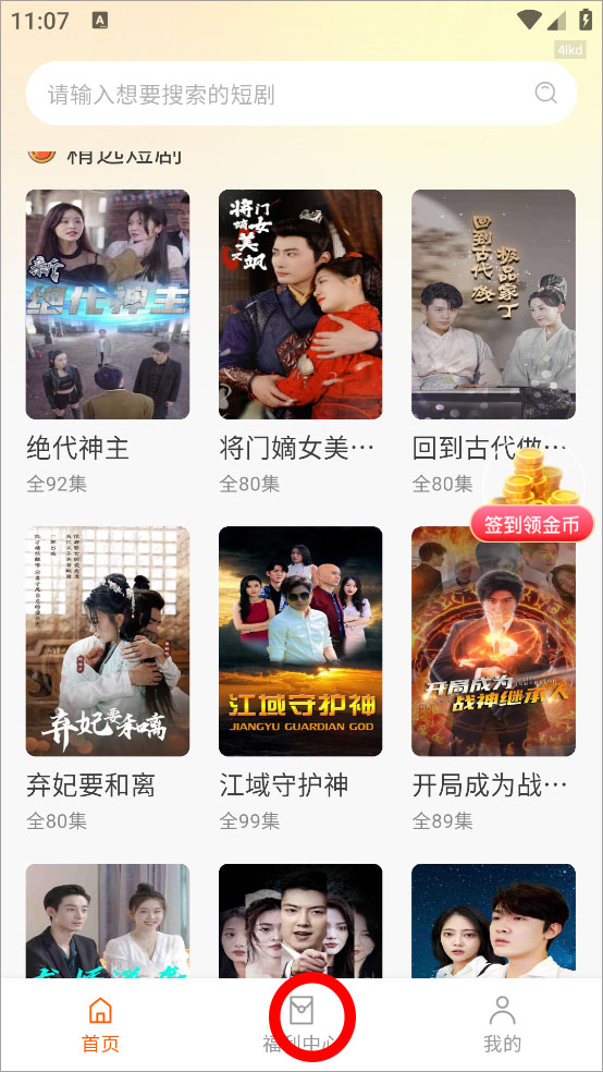 1、打开软件进入首页点击下方福利中心栏目