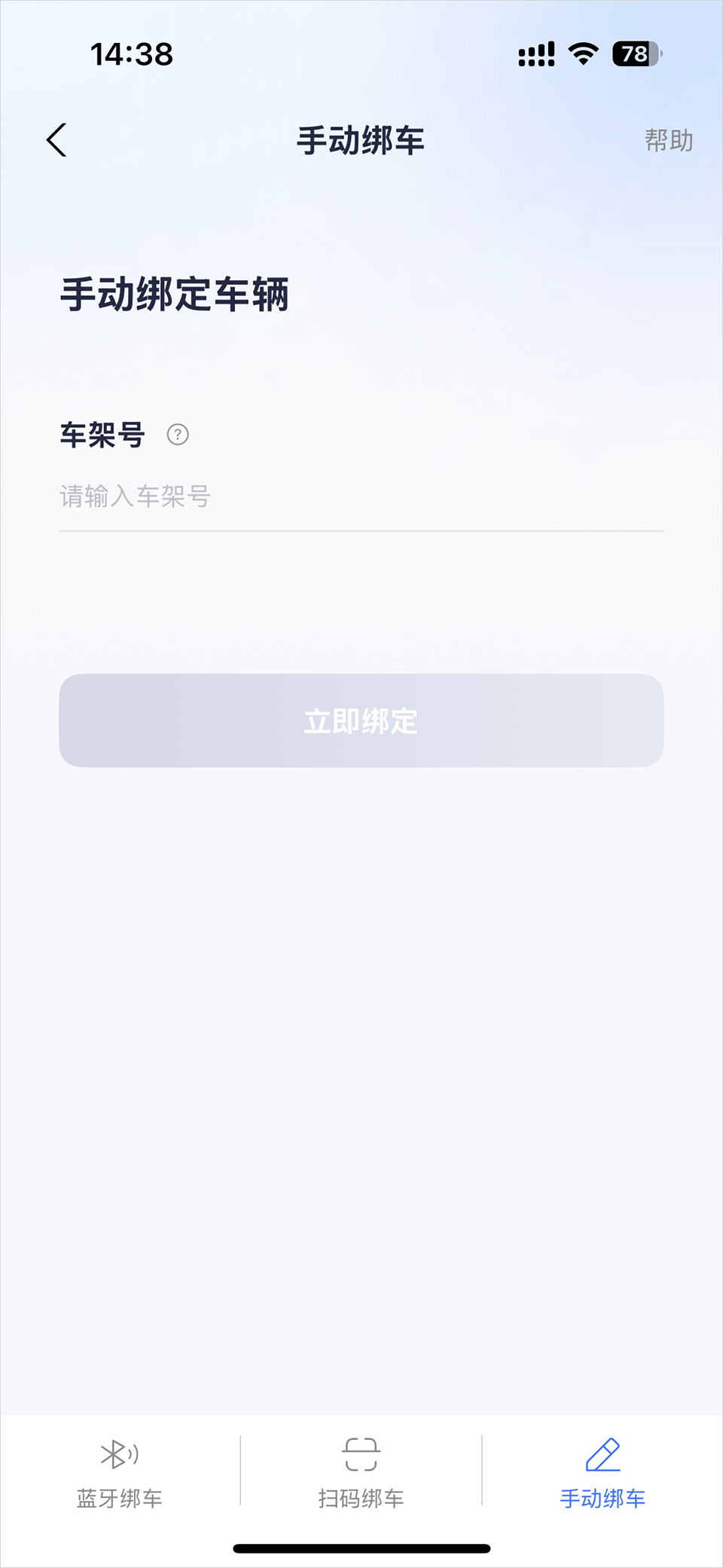 4、输入电动车的车架信息,点击立即绑定即可。