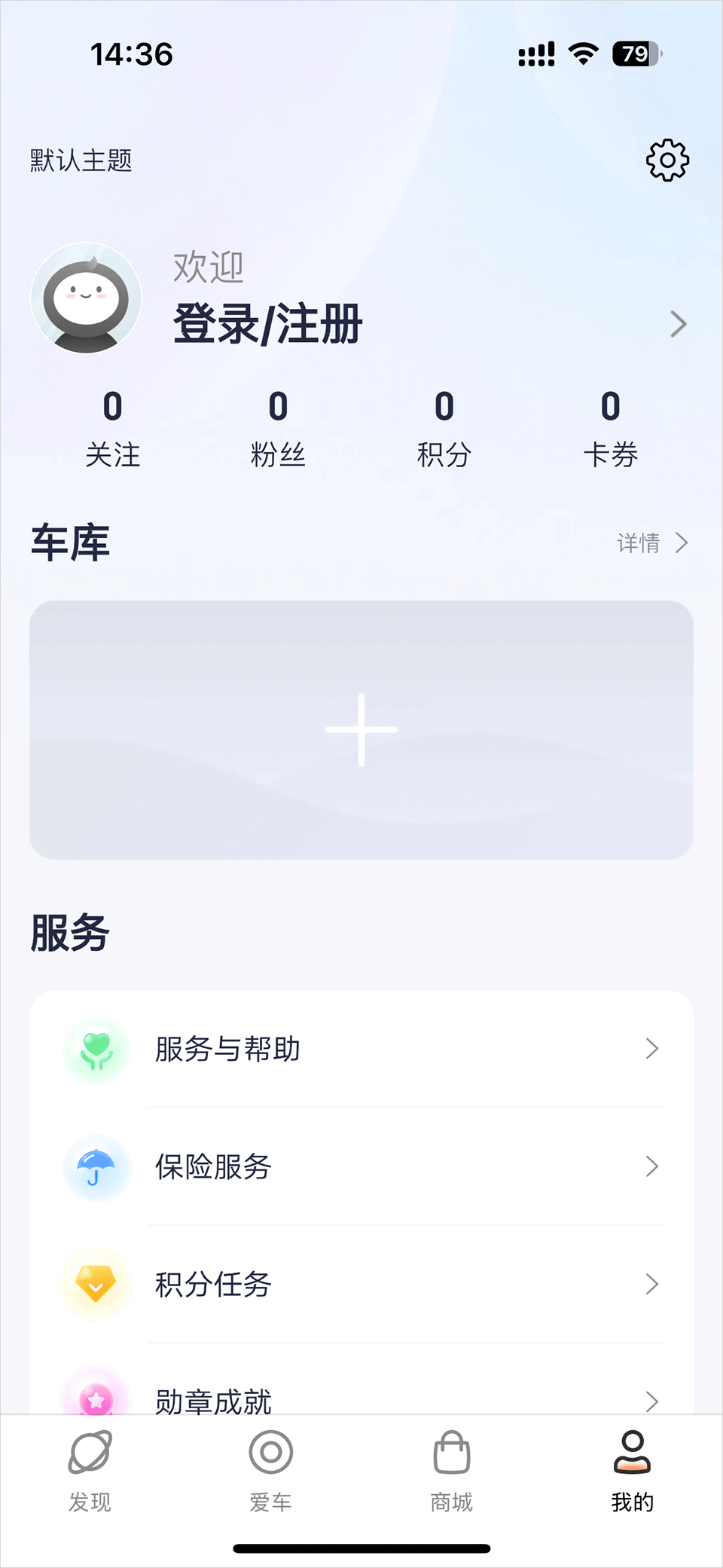 2、登录之后点击车库中的“+”;