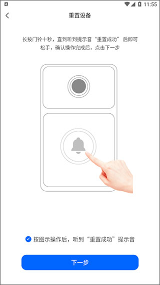 5、最后根据提示重置设备,操作完成后点击下一步找到设备即可成功添加。