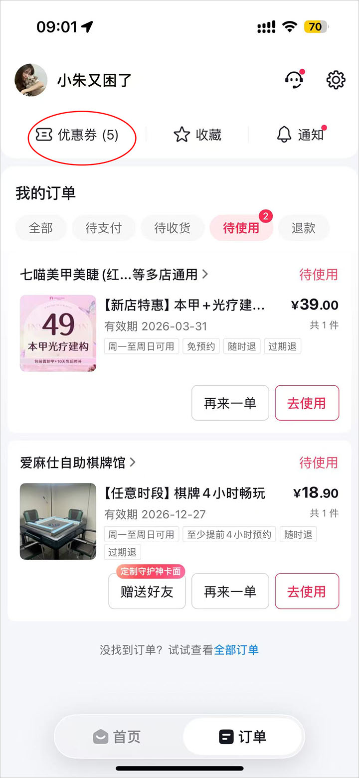 使用抖音号登录,抖音内的团购订单、收藏的团购店铺商品等信息一键同步,查看、管理订单超省心