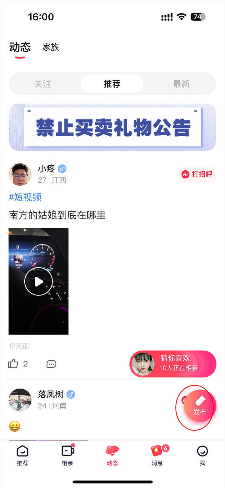 4、动态:展示个人风采,用动态表达你自己,快速吸引懂你的人
