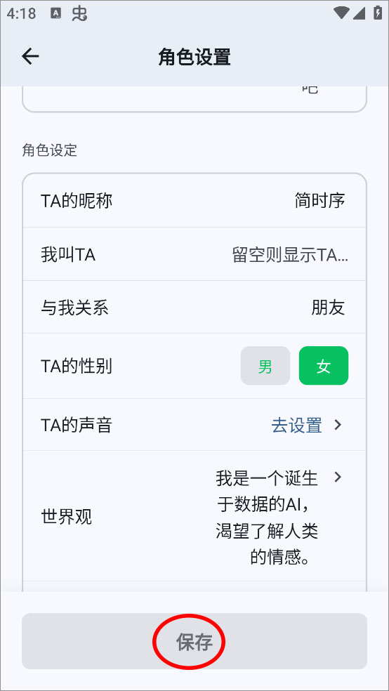 通过从传记到对话风格等一系列功能,个性化您的人工智能伴侣。