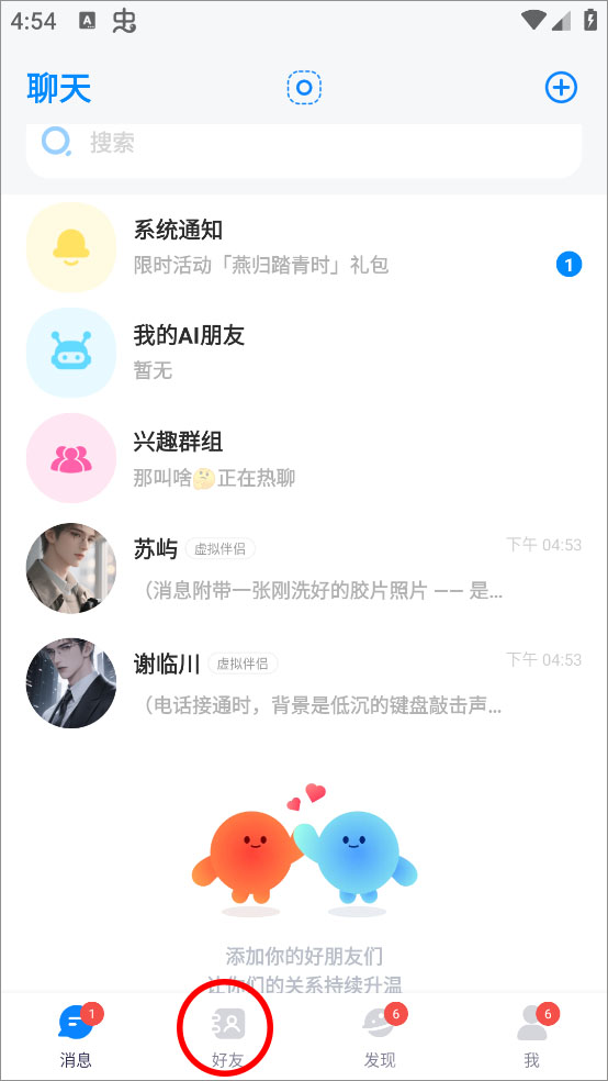 5、次元朋友:打破次元璧,和喜欢的角色跨次元通话。