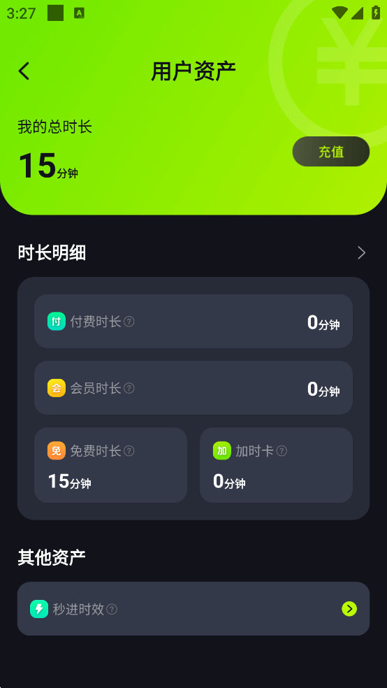 4、在资产中可以查看剩余时长