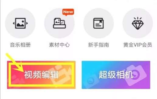 开启后,界面简洁、直截了当,点击醒目的“视频剪辑”选择相片或视频即可开始视频制作与编辑。