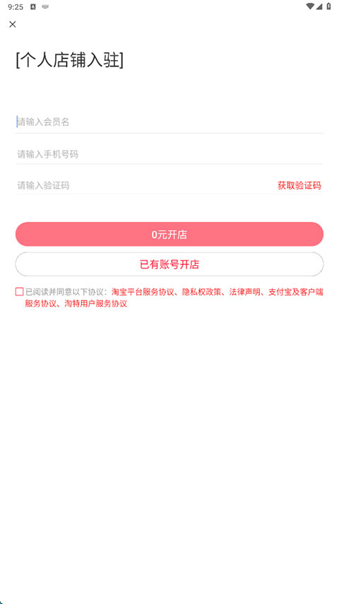 准备未绑定淘宝个人店 / 已满 6 个企业店的手机号,注册 / 登录淘宝 / 阿里账号,完成实名认证。