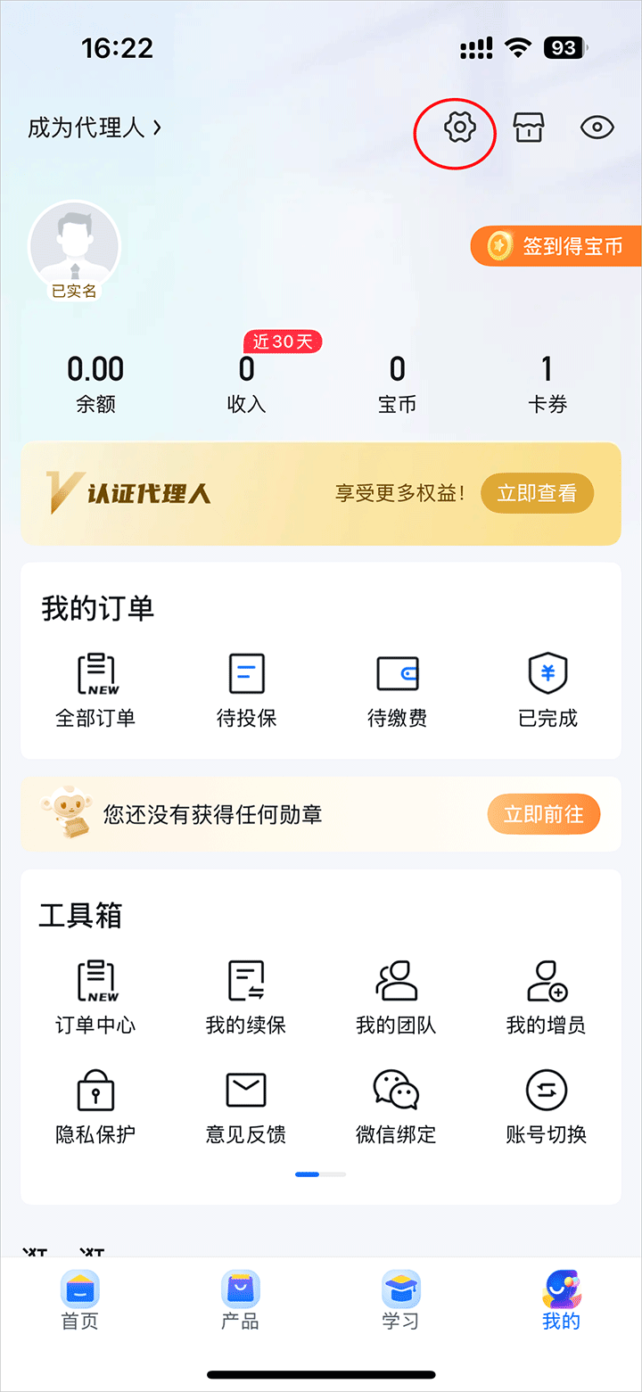3、进入设置界面要先进行实名认证之后点击银行卡