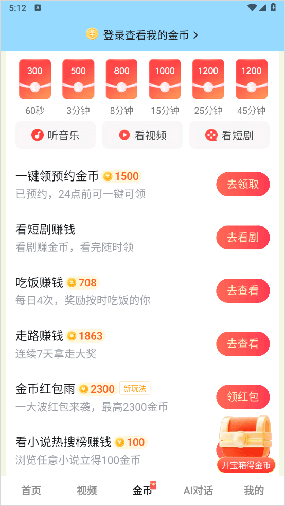1、打开进入软件首页点击下方金币进入页面进行签到