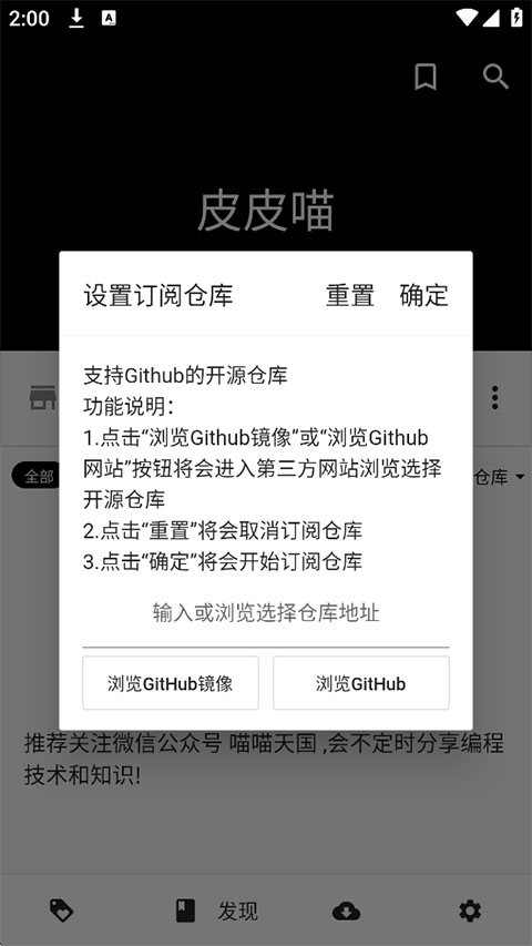 2、跳出设置订阅仓库后继续点击“浏览GitHub镜像”进入第三方网站浏览选择开源仓库