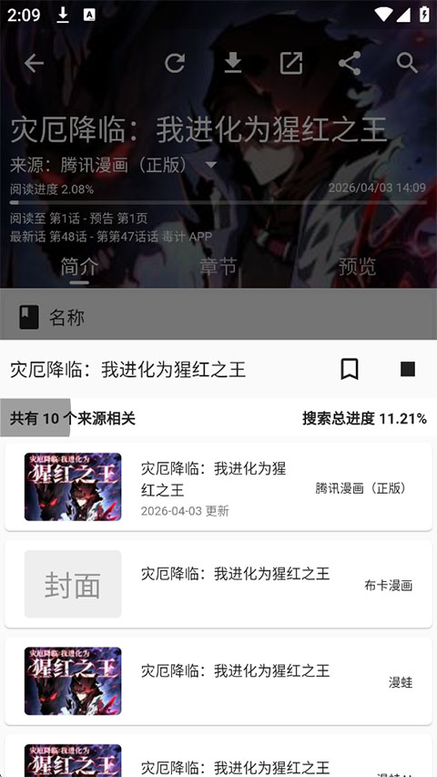 7、如果出现卡顿,画质不清楚,内容不完整的情况可以点击漫画主页右下角的“换源”,可以快速切换其他来源