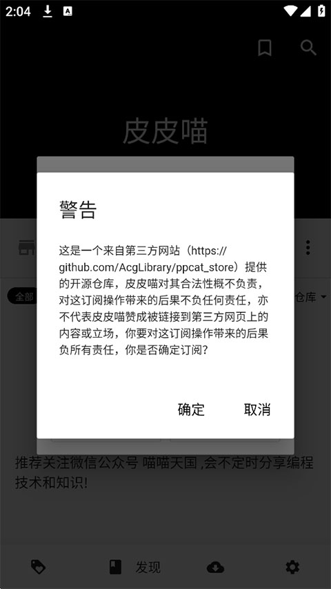 4、点击网址后会跳回设置订阅仓库页面,接着点击确定即可导入漫画