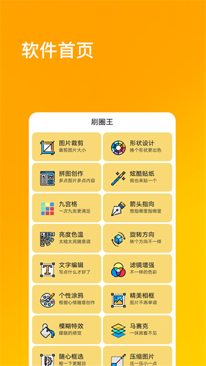 刷圈兔最新版是由南通名腾网络科技有限公司推出的一款专业图片编辑应用软件,其内置了丰富的图片处理工具,能够为用户提供图片剪切、旋转、涂鸦、滤镜、文字、拼图、压缩等18种图片编辑处理服务,从而更好的满足不同用户的使用需求,让图片处理更加的方便、快捷!