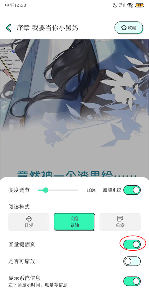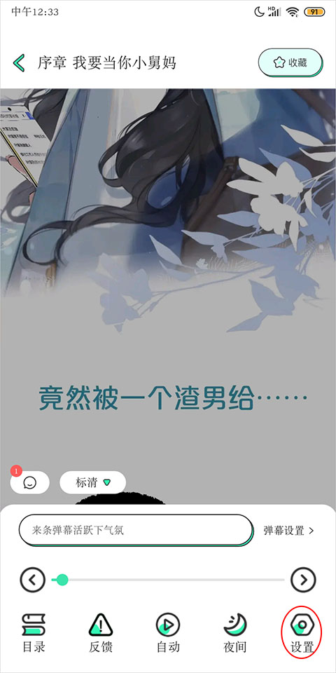 3、在阅读界面点击屏幕弹出窗口点击设置