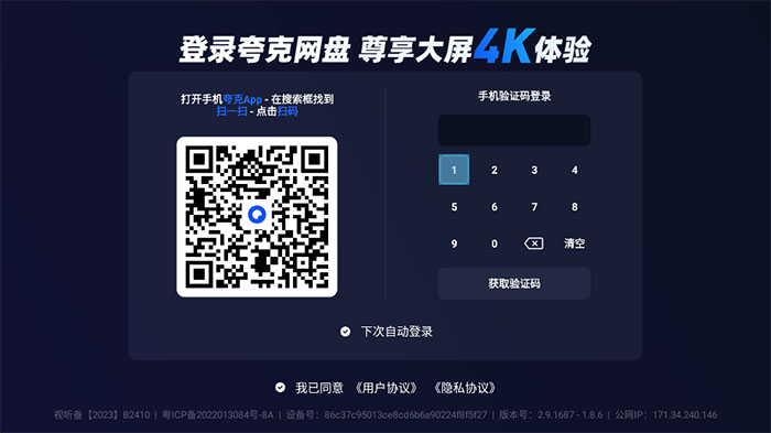 夸克网盘TV版是一款针对智能电视和电视盒子所推出的软件,其支持用户在电视上直接观看网盘内存储的视频内容。用户通过手机端夸克App扫码即可登录,无需遥控器繁琐输入,账号资源一键同步。并且支持MP4、rmvb、mov、avi等常见视频格式,播放流畅,快进不易卡顿,还提供0.5倍到2.5倍的倍速播放以及4K极清选项。同时夸克网盘TV版具备续播功能,用户在退出后再次进入会自动定位到上次观看位置,省去手动查找的麻烦,十分适合想在电视大屏上观看网盘视频的用户使用。