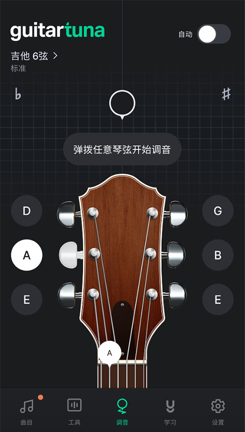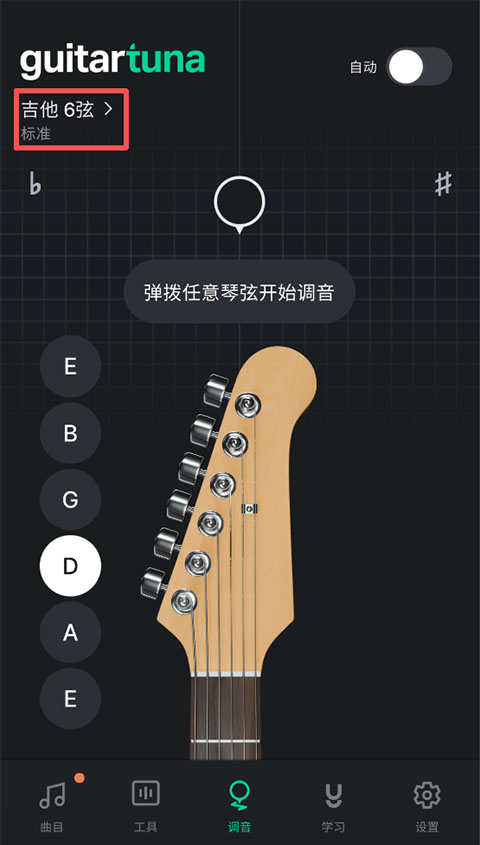 5、点击右上角的自动,弹拨任意琴弦软件内还会开始为你进行调音