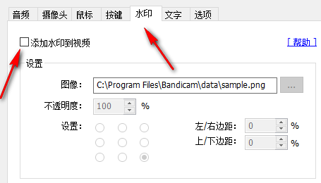 如果您已购买但仍然看到水印,请检查录制设置中是否有“在视频中添加徽标叠加”选项。如果取消选中此选项,录制的视频上将不会显示 BANDICAM 徽标。
