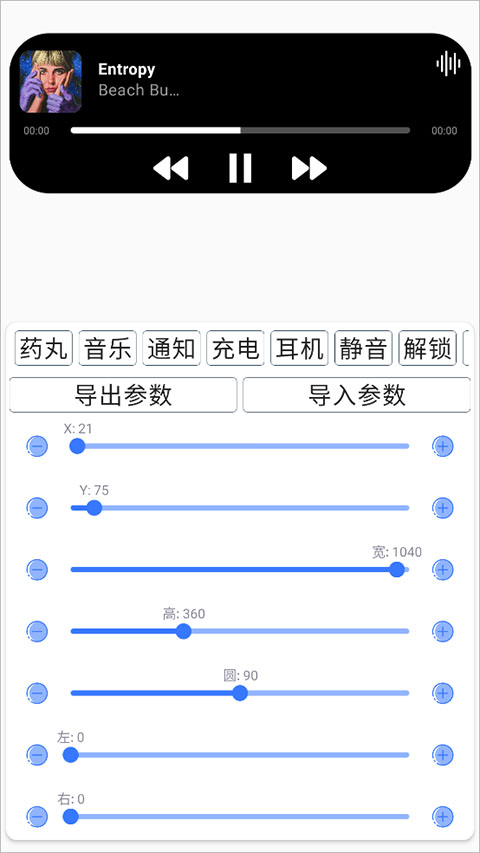 2、可自由调整灵动岛的位置适配不同手机挖孔位置、大小、圆角弧度、透明度等外观参数