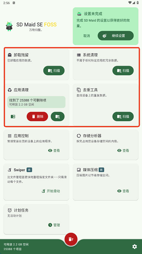 SD Maid SE是开发者为解决旧版在新安卓系统下的适配问题,而推出的现代化清理工具。它放弃了 “大而全”,选择 “小而精”,更适合当前主流安卓设备的使用需求。建议优先安装 SE,若有文件管理需求,搭配一款专业的文件管理器(如 FX File Explorer)即可。