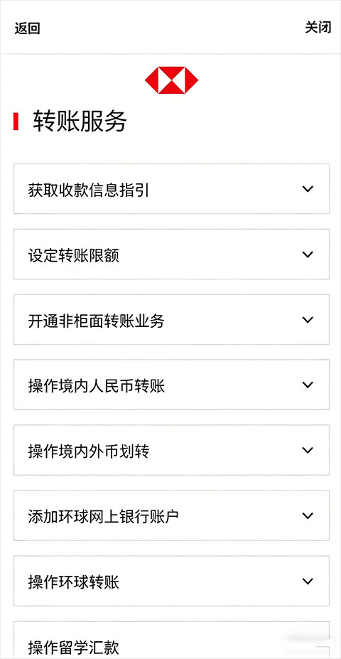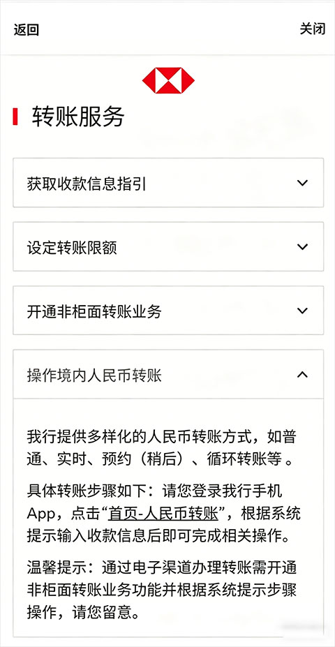 4、在转账服务的相关问题下,点击操作境内人民币转账选项即可出现具体方法了。