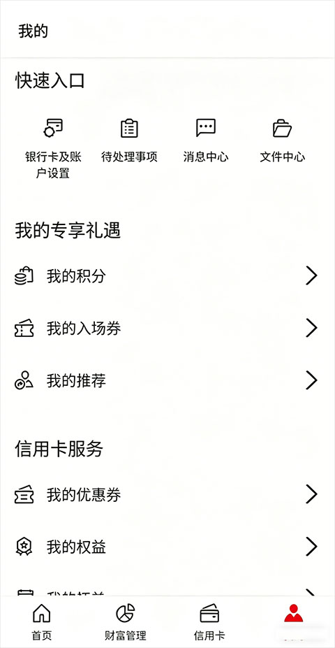 2、然后在我的页面中点击快速入口下方的银行卡及账户设置入口,即可查看卡号了。