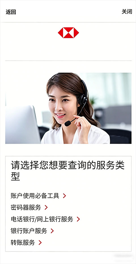 4、服务触手可及:附近银行网点及ATM即时查询,在线客服随时为您服务,更可一键拨打汇丰服务热线。
