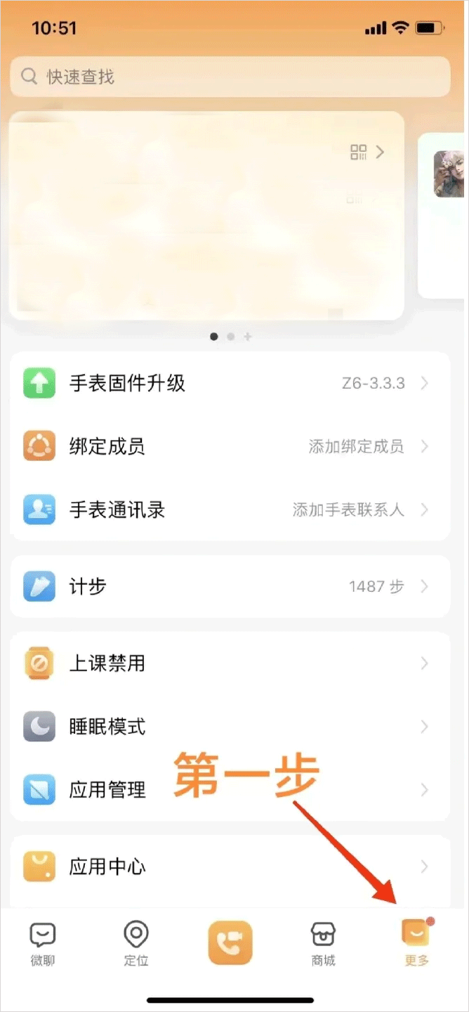 1、打开小天才电话手表app,找到右下角更多
