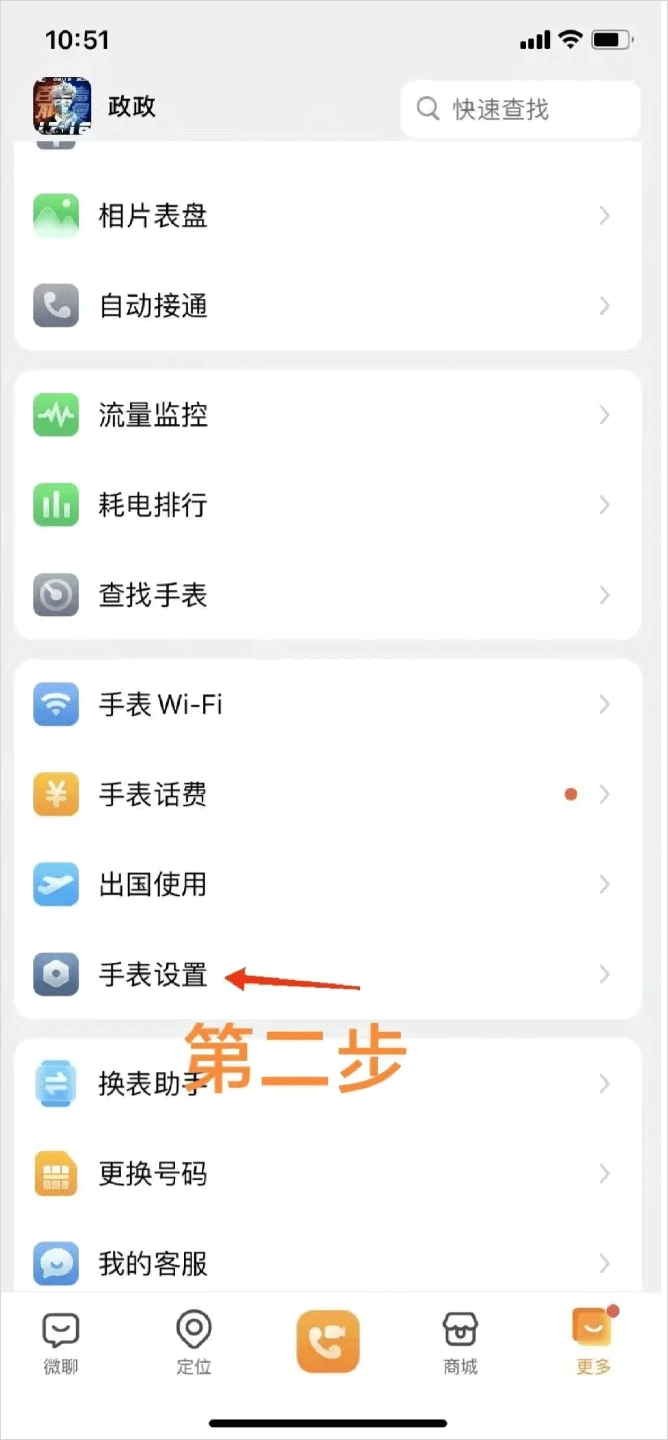 2、点击手表设置