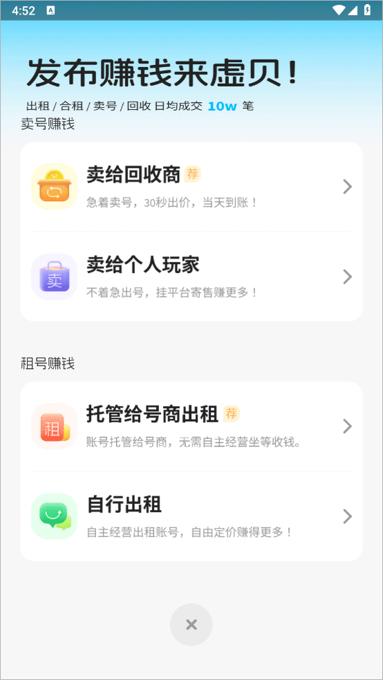 虚贝租号app是一款游戏爱好者的游戏账号租号软件,其涵盖丰富的游戏账号资源,如:王者荣耀、和平精英、第五人格、光遇、蛋仔派对、CF手游等各种各样的游戏账号信息,可以满足用户的多样化需求,用户可以根据自身需求进行对比,找到性价比最高且心仪的账号进行租赁。同时该款软件价格公开透明,并且这里面每天都会有特价账号限量放送,感兴趣的用户快来这里找到心仪的账号进行租用,体验畅玩高端游戏账号的乐趣。