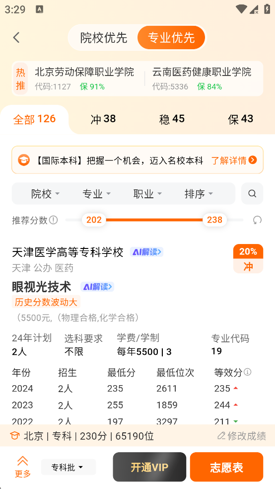 3、AI填志愿利用先进的算法,根据考生的分数和排名,提供个性化的志愿填报建议,包括保底和冲刺选项。