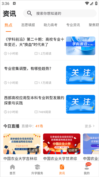 6、资讯处实时更新学校热点,专业动态以及可以观看学校直播